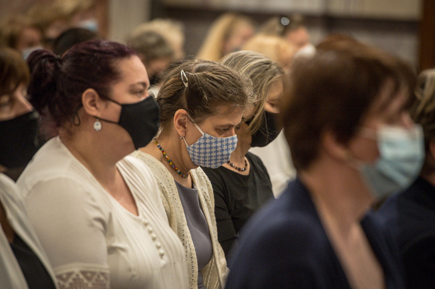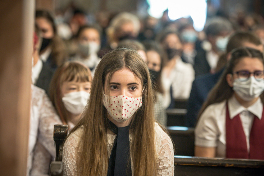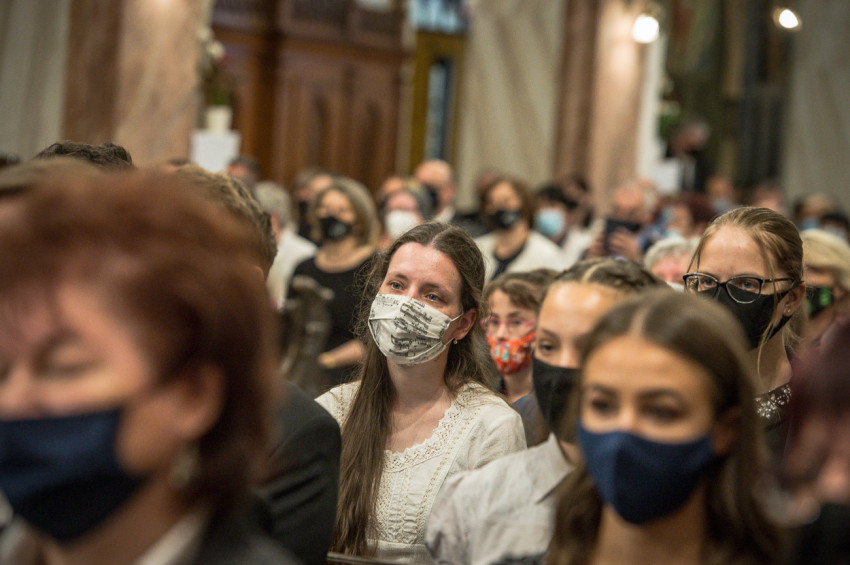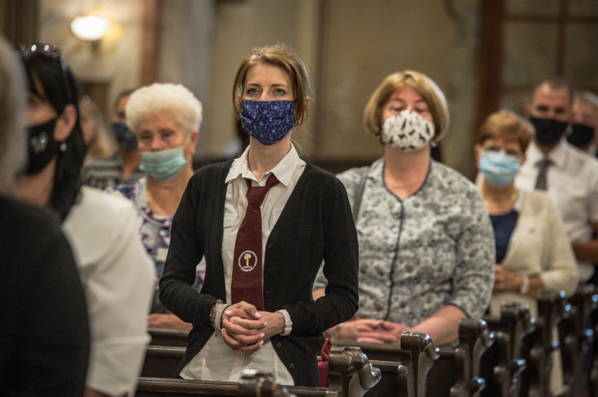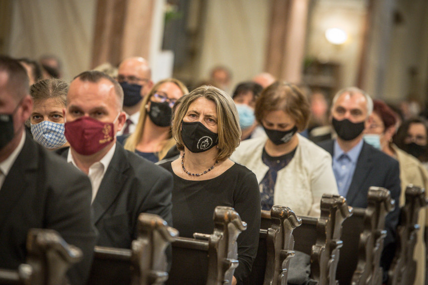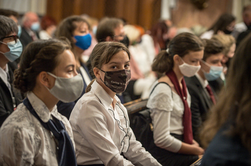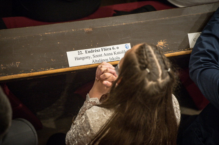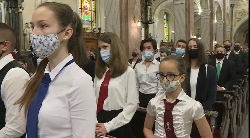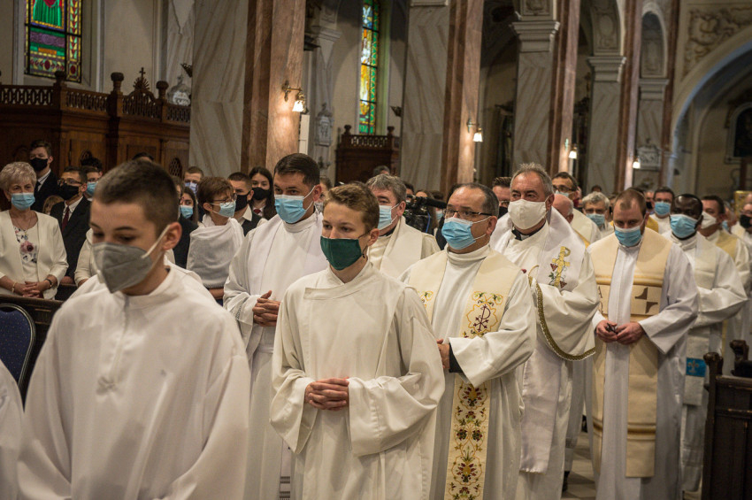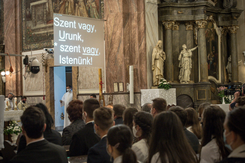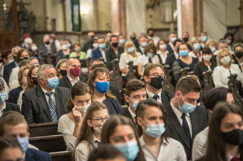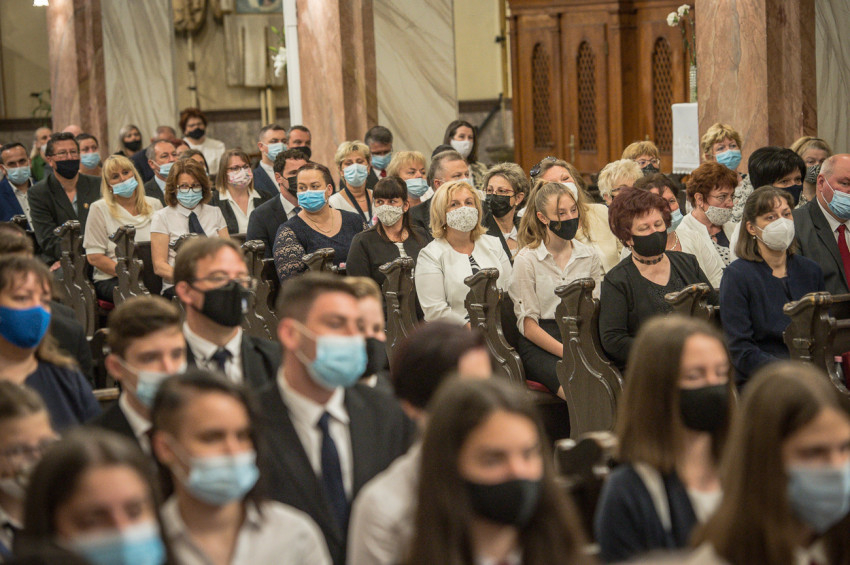 Ma a székesegyházat helyettesíti a gyöngyösi templom – fogalmazott a szentmise bevezetőjében a főpásztor. – Itt van a papság, az intézmények képviselői. A hála és a köszönet a legelső: köszönetet mondunk Istennek és mindenkinek, akik azon dolgoztak, hogy ez a tanév is eredményes legyen.