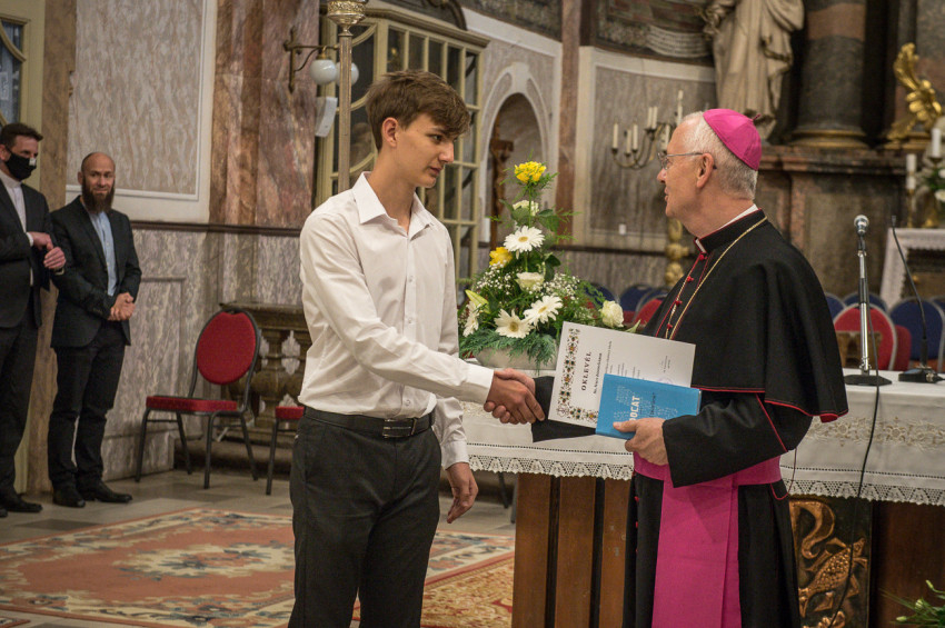 Ternyák Csaba egri érsek gratulált a kitűnő teljesítményt nyújtó diákoknak, és bezárta a 2020/21-es tanévet.