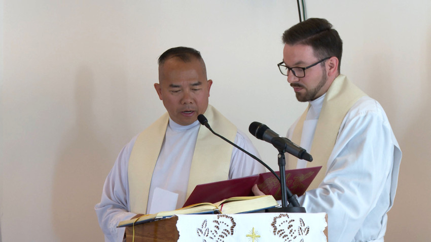 Az új templom falait az egri érsek meghintette szenteltvízzel, majd Tran Si Nghi Ferenc atya bemutatta a bérmálkozásra készülőket, akik kérik a szentség kiszolgáltatását.