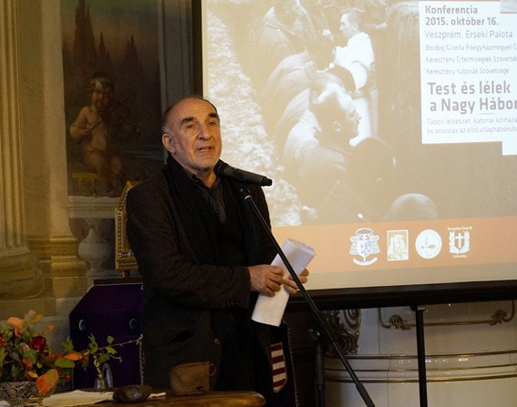 Eleinte a katonai és az egyházi vonal összetartozott, egy időben a katonaság alá rendelt volt a lelkészség is, később különvált attól és a tábori püspökség irányítását követte. 1867 után tizenkét katonai körletet hoztak létre, s ennek alapján szervezték meg a tábori lelkészségeket. Az első világháborúban már kétezer-négyszáz tábori lelkész szolgált. Az Osztrák-Magyar Monarchia hadvezetése mindent megtett azért, hogy a különböző vallású katonák hitüket gyakorolni tudják a hadseregben is – hangzott el az előadásban. – A lelkészeket intették, hogy a prédikációkban és a különböző liturgikus alkalmakon a háborút mint értékteremtő és Istentől eredő entitást emlegessék. Ezzel az idillikusnak tűnő képpel állt szemben a lövészárkok, harcmezők, hadikórházak és a temetők valósága, amelynek ellentmondása a háború előrehaladtával egyre világosabbá vált a világ és a katonák számára is.