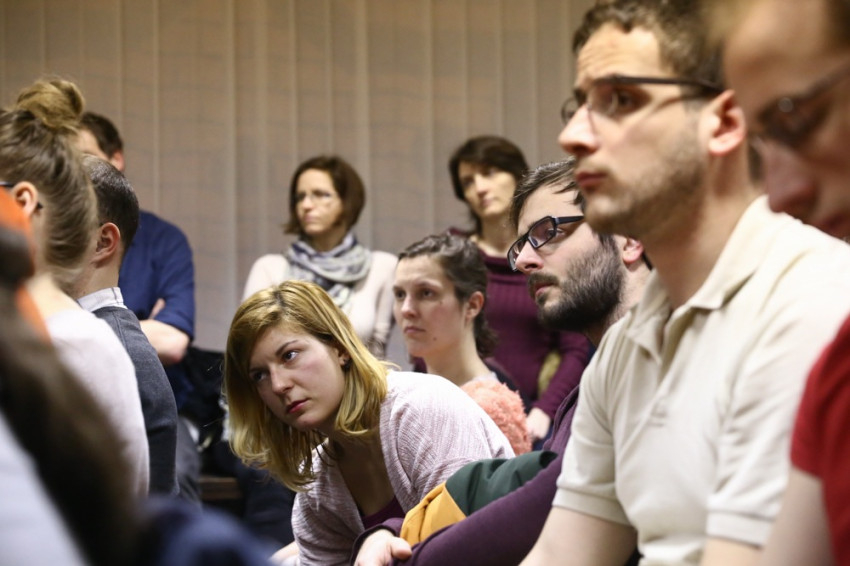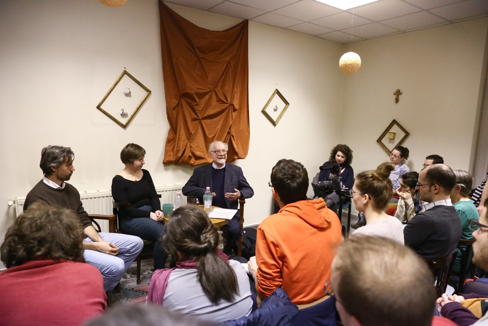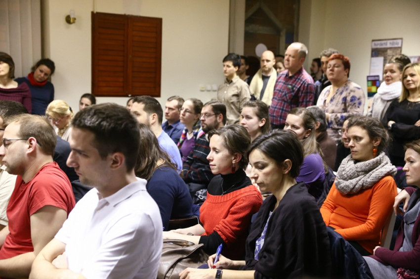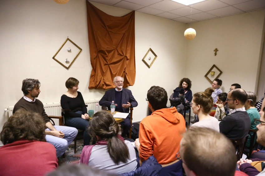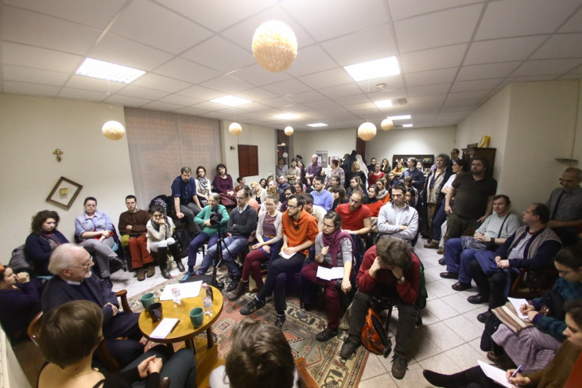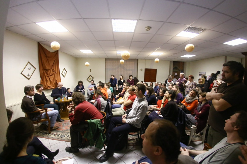 Kedden este zsúfolásig megtelt a Molnár utcai Panágia Központ, ahol Mustó Péter jezsuita szerzetes, lelkivezető és Kántor Árpád pszichológus, pszicho-szomatoterapeuta beszélgettek az Útkeresés Háza „Osztó-pontok” elnevezésű sorozatának keretében.