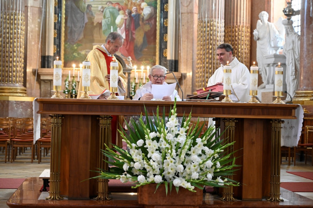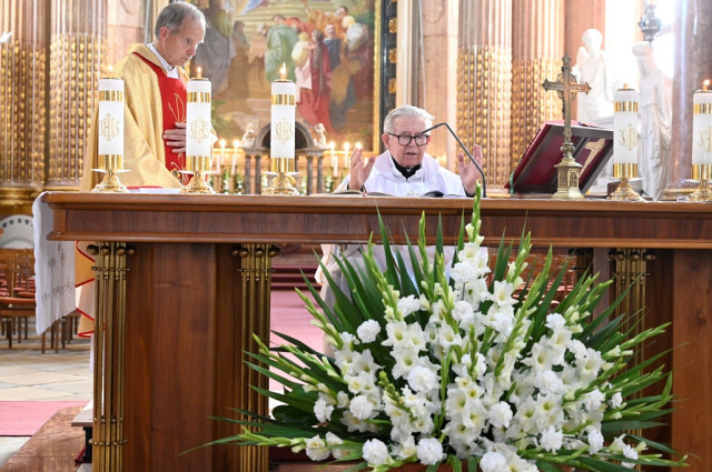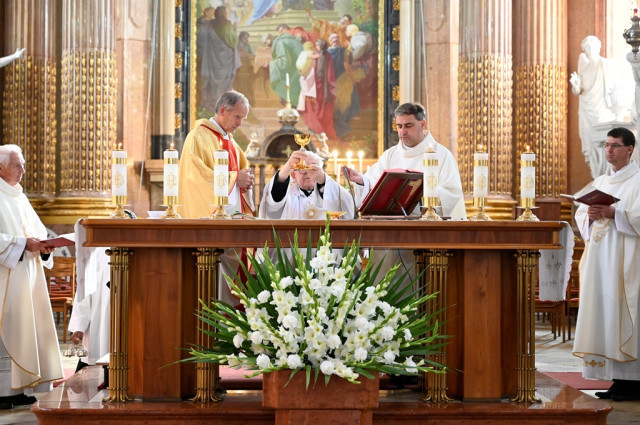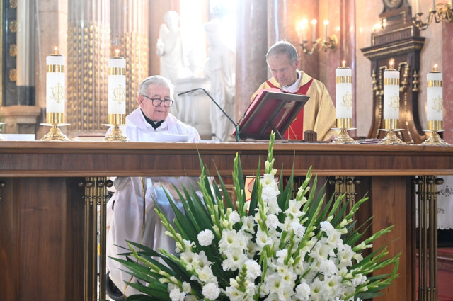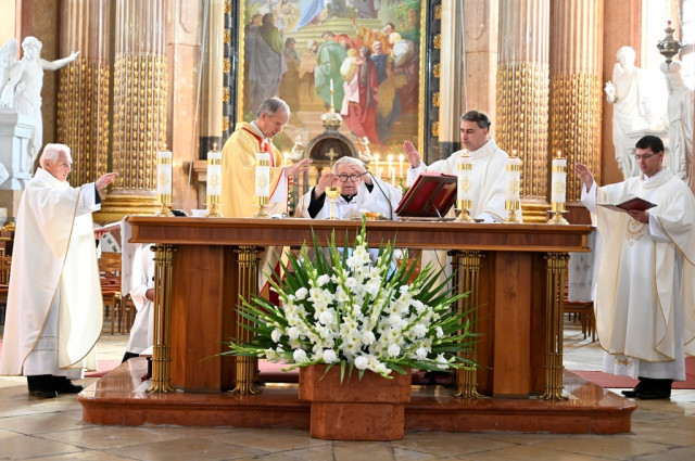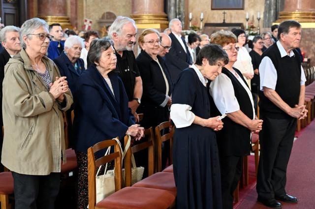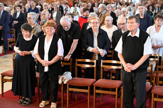 A hálaadás végén gyémánt- és aranymisés áldásban részesítették a velük együtt ünneplő papokat és híveket.