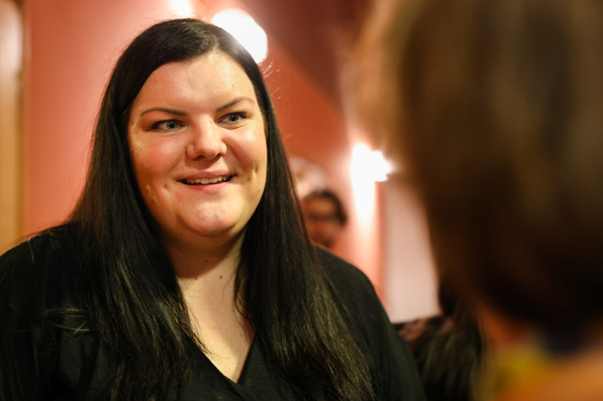 A díszterem bejáratánál Gombkötő Beáta evangélikus lelkész és segítője fogadja őket. Ők a liturgusok. Kezükben kancsó és törölköző, s miközben a belépők kezet mosnak, a liturgus Krisztus megkeresztelkedésére emlékeztet: