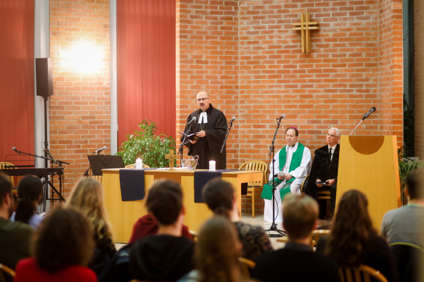 A MEÖT-székház folyosóján fiatalok sokasága várakozik. Az ÖKI által szervezett imaestre jöttek, hogy a „Tanuljatok meg jót cselekedni, törekedjetek az igazságra” (Ézs/Iz 1,17) mottó jegyében imádkozzanak a keresztények egységéért.