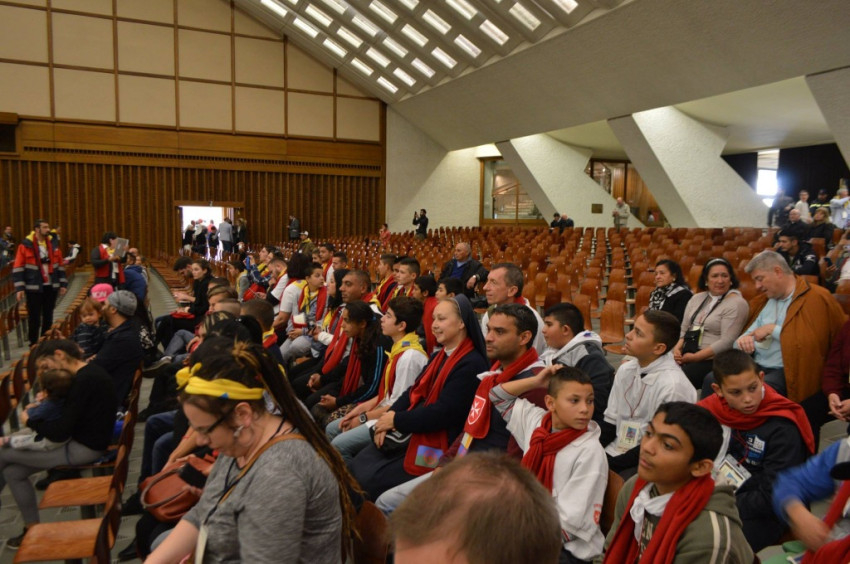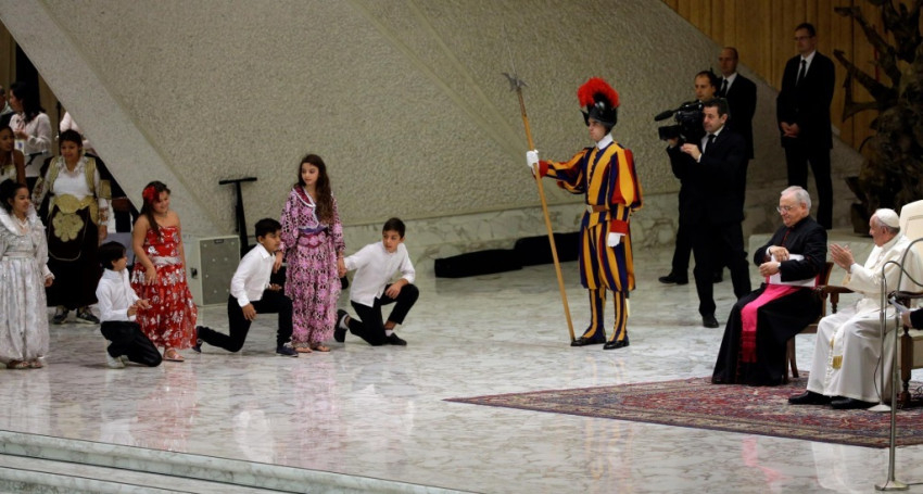 Ebbe az évszázadok óta tartó jó kapcsolatba illeszkedett bele az idei roma zarándoklat, amelynek során a résztvevők találkoztak Ferenc pápával. A találkozás előtt a VI. Pál teremben különböző zenekarok és tánccsoportok léptek fel, akik közül ki kell emelnünk a Kalyi Jag együttest Varga Gusztáv vezetésével. Méltán kapták talán a legnagyobb tapsot hagyományokra épülő, autentikus énekükkel.