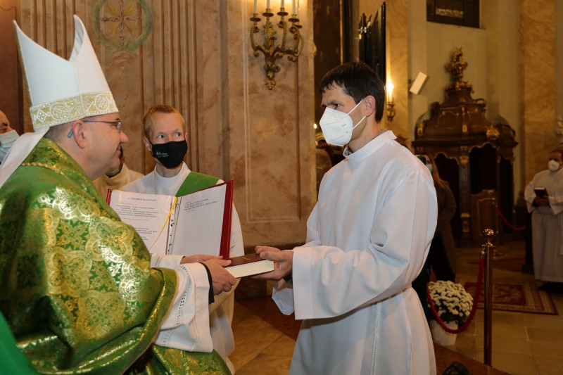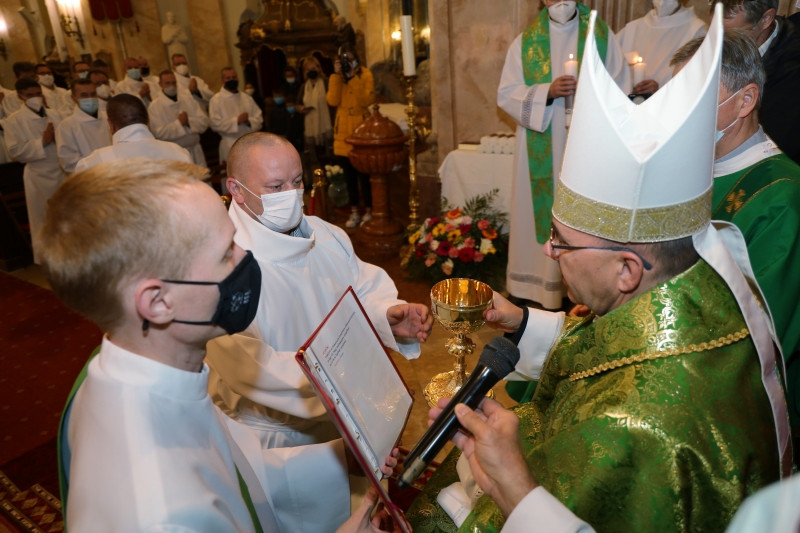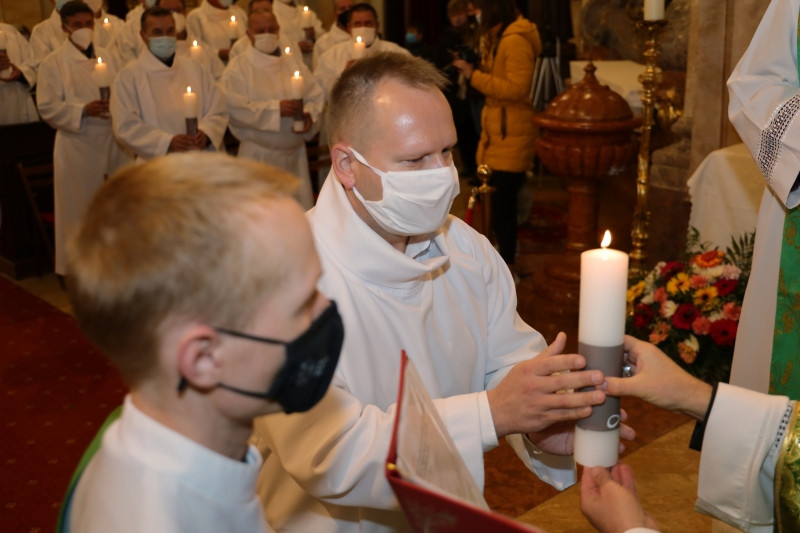 A homíliát követően a szentmise az avatási szertartással folytatódott, amely során az új lektorok a Szentírást, az új akolitusok pedig égő gyertyát kaptak, ezzel jelképezve azt, hogy vigyék Krisztust, a világosság forrását a sebzett teremtett világba és gyógyítsák beteg embertársaikat.