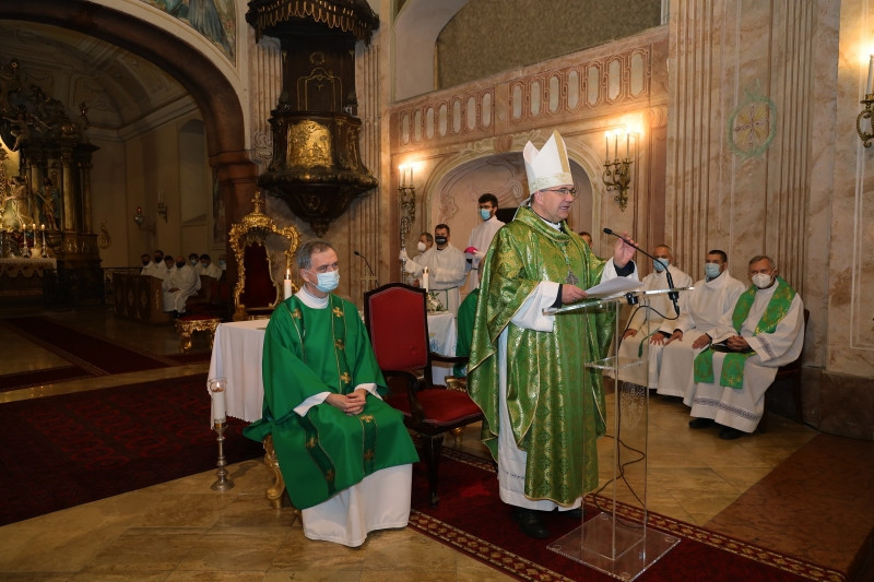 Marton Zsolt püspök szentbeszédében ismertette a lektorok és az akolitusok feladatait az Egyházban: „Ma küldetésre bocsájtjuk, sajátos értelemben vett hivatalt adunk az erre alkalmas férfiaknak, hogy legyenek Isten szolgálattevői, közvetítsék az örömhírt embertársaiknak azáltal, hogy az Egyház megbízásából felolvassák Isten hozzánk szóló üzenetét a Szentírásból mint lektorok (felolvasók), és az eucharisztikus lakomában részesítik az erre felkészült testvéreiket a szentmise keretében mint akolitusok.”