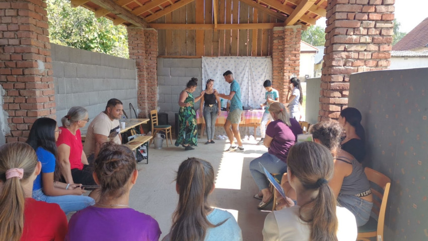 A tinédzserek számára szervezett táborban az apostoli létszámot első nap kibővítette hét vendég, a nyírkátai Pharne Cherhaja roma hagyományőrző csoport tagjainak érkezése. Előtte a munkatársak együtt imádkoztak, hogy valóban értékes három napot teremtsenek a gyerekeknek.