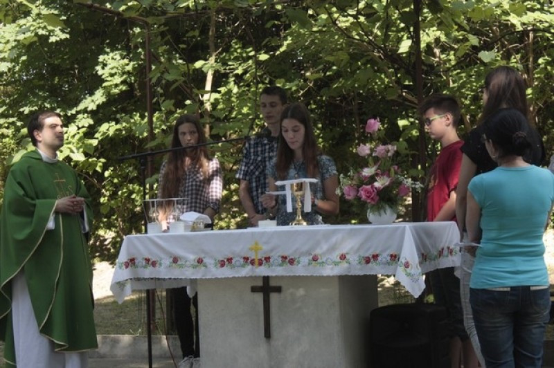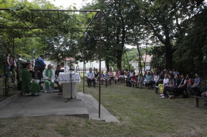 A nyúli Szent Donát-kápolna melletti téren gyűltek össze a győri Apor-iskola fiataljai, szüleik és a település hívei.