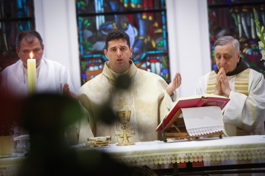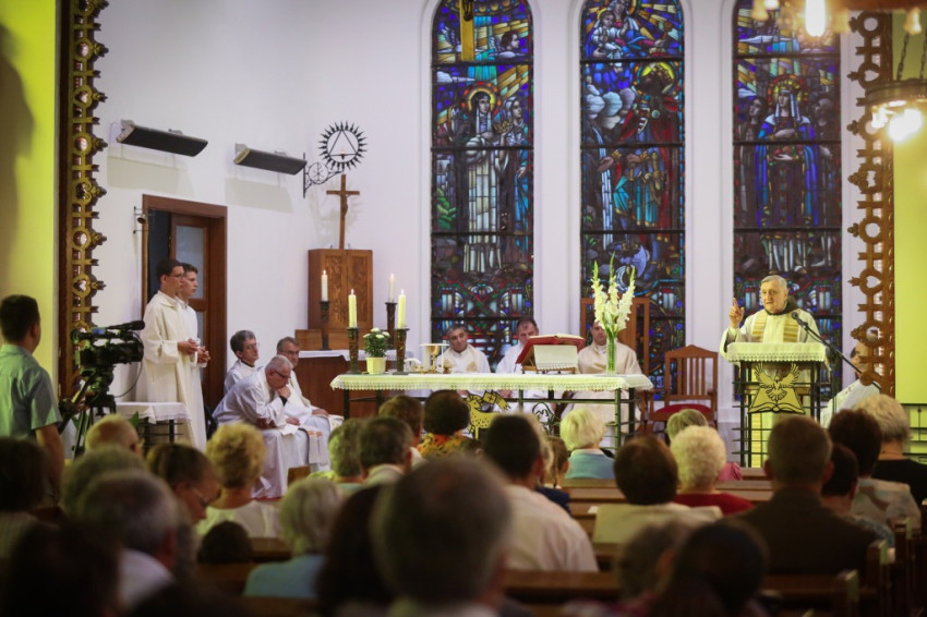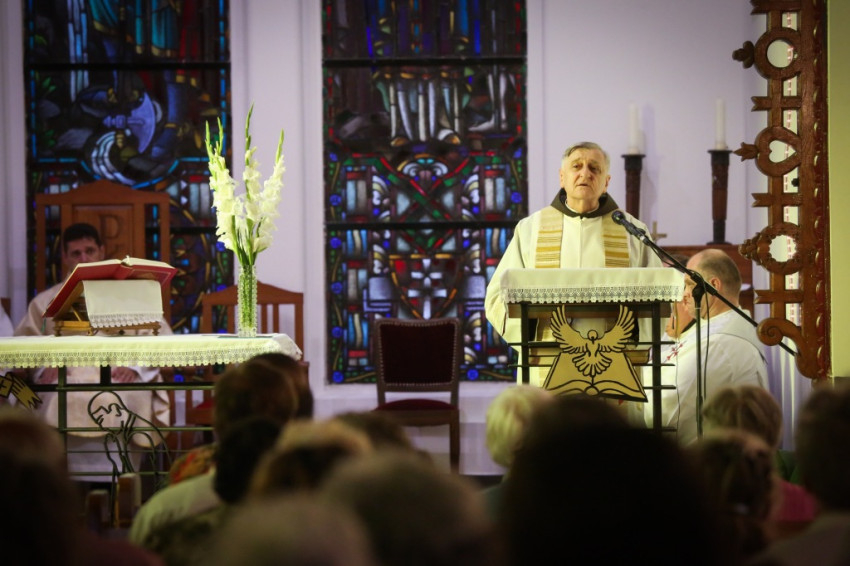 A közös ünneplés egybeesett a templom búcsújával, a környékbeli hívők és az atyák ismerősei, barátai megtöltötték a templomot. Barsi Balázs ferences szerzetes homíliájában a „szeresd felebarátodat, mint önmagadat” kifejezés ószövetségi és újszövetségi értelmezését adta. Újszövetségi értelemben az idézett megfogalmazás hamis, ugyanis a szeretet két személy közötti viszonyt feltételez, s ennek valódi kiáradása a Krisztusban való szeretet. Ilyen értelemben az ember és ember közötti szeretetkapcsolat tulajdonképpen eszköz a szeretet eléréséhez. A szeretet maga személy, nem más, mint Krisztus, azaz Isten.