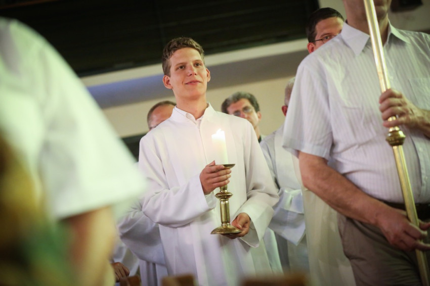 Az egykori évfolyamtársak a sekrestyében sorshúzással döntötték el, ki legyen a főcelebráns. Ailer Gáspár dunabogdányi plébánossal együtt koncelebráltak a többiek, hálát adva Istennek az eltelt huszonöt esztendőért, és kérve a Mindenható segítségét az előttük álló további szolgálatban.
