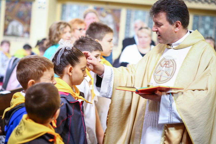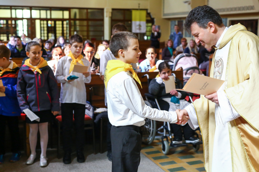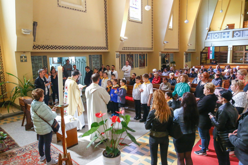 A homíliát követően Gyetván Gábor a keresztség szentségében részesítette az első padban felsorakozott tizenegy gyermeket, majd Neruda Károly megáldotta őket. A szentmisén zenei szolgálatot végzett Gémesi Katica és Szabados Zsófia, az intézmény pedagógusai.