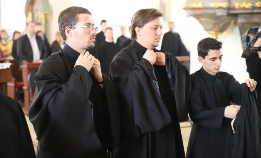Orosz Atanáz Szent Ágostont hozta fel példaként, aki vallomásaiban emlékeztet minket arra a sokféle lelki küzdelmére, amelyekkel felnőttkori megtérése, megkeresztelkedése után kellett még megvívnia az élet harcát. „Nem tudta, hogy miután döntött Isten királysága és e világ között, még további döntésekre lesz szüksége – vallja be a szent életű püspök. Igen, neki, a felnőttként megkeresztelt, kiforrott korban lévő Szent Ágostonnak is, át kellett élnie, hogy nem elég egy nagy elhatározás, nem elég egy fölvétel az egyház tagjai vagy a szeminárium tagjai közé, hanem újra meg újra bátor, nagylelkű döntésekre van szükség. Ezeknek egyike a kisebb rendek felvétele is” – fogalmazott a főpásztor. A nagy tisztség mellett a fiatalemberek kötelezettséget is kaptak – folytatta –, ami nem csak mától holnapig, hanem Krisztus Urunk eljövetelének a napjáig tart. Ezt pedig tökéletesen kell várni. Erre készít elő a mindennapi Szentírás-olvasás, az odafigyelés Isten igéjére, ami lélek és élet.”