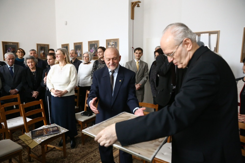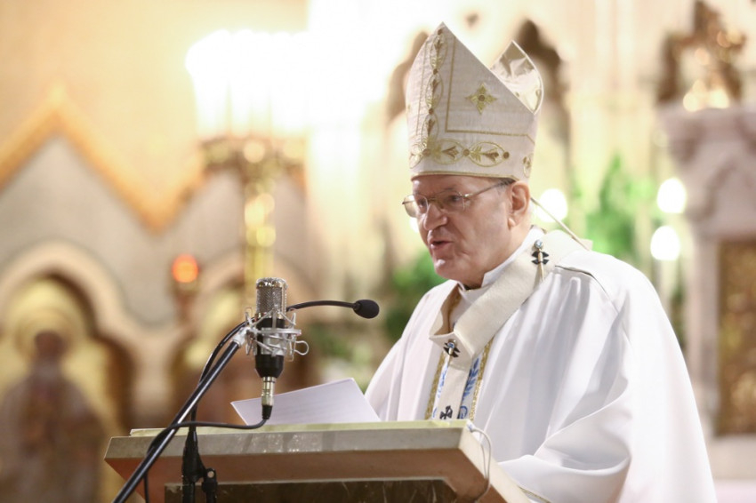 Erdő Péter bíboros a szentmise elején hálát adott azokért az értékekért, amelyeket a Mária Rádió közvetít, valamint a munkatársakért és önkéntesekért, kérve rájuk Isten áldását.