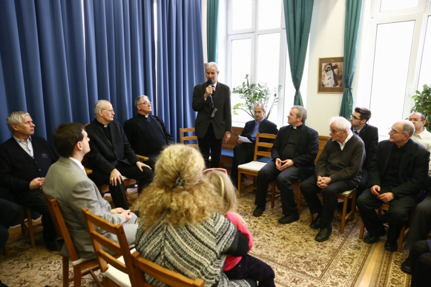 A beszélgetésen elsőként Jelenits István piarista szerzetes-tanár szólalt fel, aki a Mária Rádióban évek óta az Evangéliumi magyarázat című műsorban értelmezi röviden az adott nap szentírási szövegeit. Amint megosztotta a hallgatósággal, a kezdetben három évre eltervezett közös munka észrevétlenül tartott tovább egészen mostanáig, amely során ő maga is exegetikai igényességel próbál meg újra és újra közelíteni a Szentíráshoz. Ebben valódi lelkipásztori feladatot lát, hiszen a rádión keresztül egy sajátos keresztény közösség alakul, főleg olyanokból, akik magányosok, idősek, akik már nem tudnak közösségbe vagy szentmisére járni, vagy akik úton vannak, és az autójukban hallgatják az imádságokat. Ily módon az egyház közössége is szélesedik, és más, talán láthatatlanabb módon kapcsolódnak be az egyházi életbe.