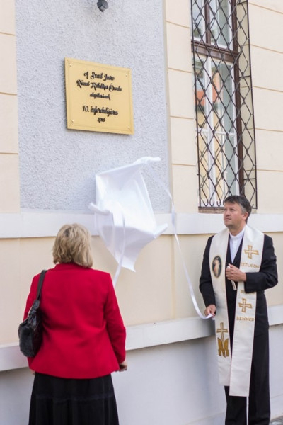 Az udvaron elhangzottak a köszöntőbeszédek, megemlékeztek az alapító plébánosról, Kovács Sándorról. Kémenes Lóránt és az óvoda igazgatója, Péter Tünde leleplezték az emléktáblát, a főesperes szenteltvízzel hintette meg azt, valamint az óvoda helyiségeit.
