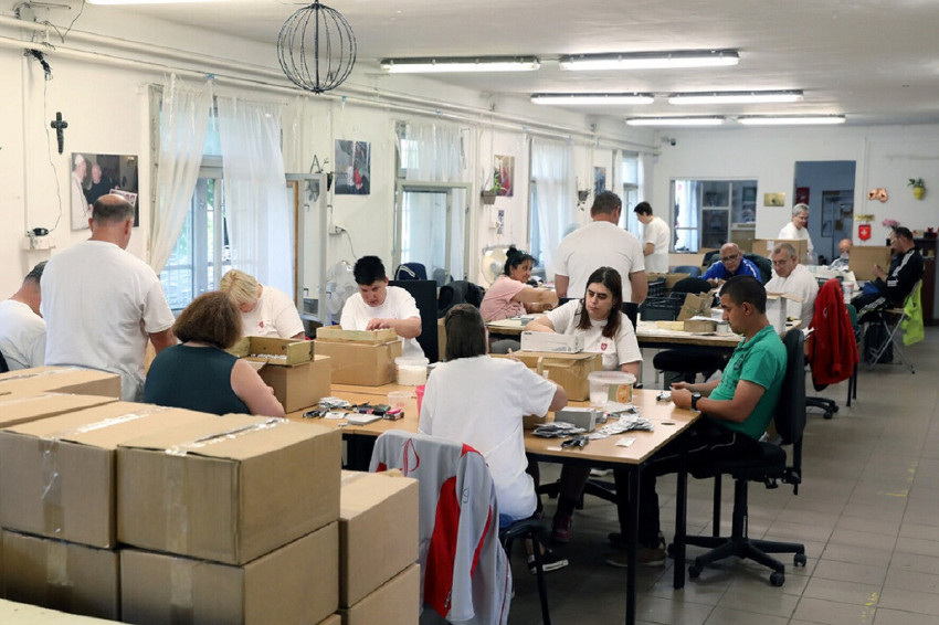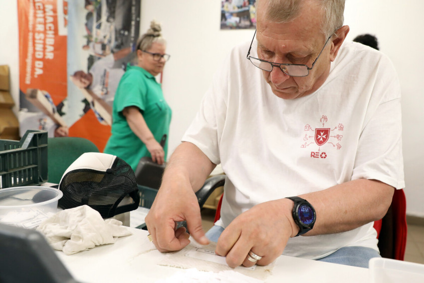 Hétköznap délelőtt javában folyik a munka a pécsi Máltai Szeretetszolgálat Gondoskodás Nonprofit Kft.-jének műhelyében, amely harminc értelmi vagy testi fogyatékossággal élő, illetve krónikus betegséggel küzdő kollégát foglalkoztat. Egy nagy asztal körül többen függönykarnishoz való alkatrészeket csomagolnak – minden tasakba tíz pici műanyag záróelemnek kell kerülnie.