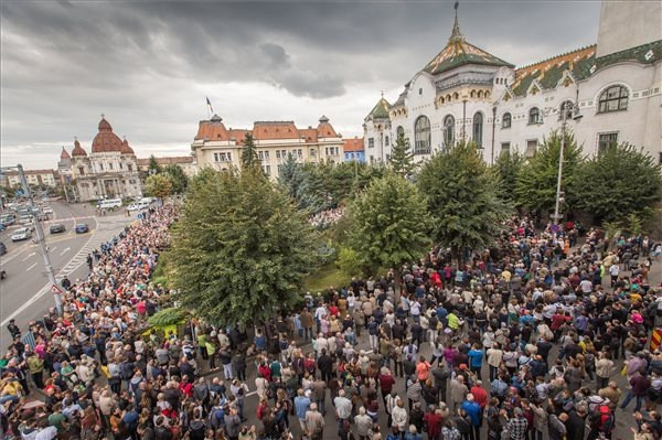 A több ezres tömeg a magyar és a székely himnusz eléneklésével és szűnni nem akaró tapssal fejezte ki, hogy egyetért az elhangzottakkal. Sokan gyertyát gyújtottak és egyházi énekeket énekeltek, aztán csendesen távoztak a marosvásárhelyi prefektusi hivatal előtti térről.