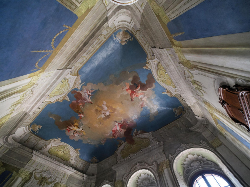 A mennyezetkép – amelyen a csillagjegyek és az időjárás szimbólumai is láthatók – ugyanis nem csak dekoráció, több jelentésrétege is van; a festményt akár antik mitológiai utalásokba rejtett püspöki hitvallásként is lehet értelmezni. Az alkotásnak ugyanakkor nem csak a jelentése okozott fejtörést, Cimbal festéstechnikája is váratlan feladat elé állította a restaurátorokat.