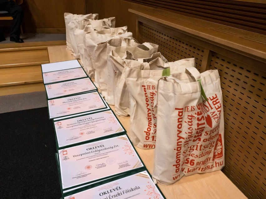 Zárásként a Karitász hálája kifejezéseként okleveket adományozott azoknak, akik az elmúlt évben kiemelten segítették a szervezetet. Elismerést kapott Gulyás László; Orbán Judit a nemzeti Agrárgazdasági Kamara igazgatóságának képviseletében; Ugron Ákos, a Verga Zrt. vezérigazgatója; Sebestyén József, a Veszprémi Érseki Főiskola rektora; valamint Brányi Mária, Veszprém város alpolgármestere.