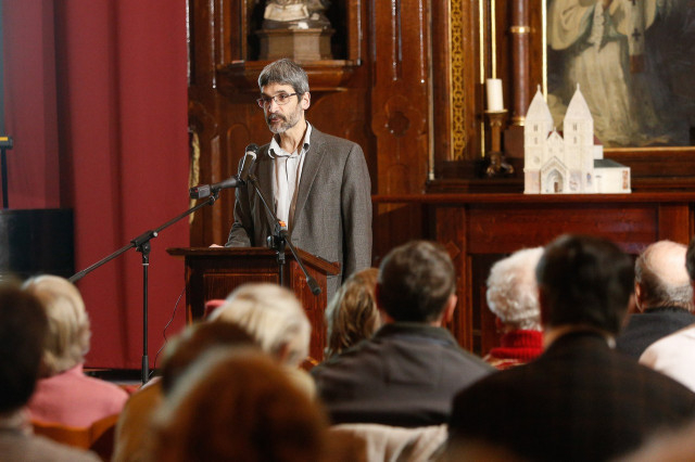 Több módszerrel is vizsgálták a templom köveit – ezt már Szemerey Kiss Balázs kőrestaurátor, a Magyar Képzőművészeti Egyetem Restaurátor Tanszékének vezetője mondta előadásában, ismét hangsúlyozva, hogy a vizesedés a talajhoz közeli rétegekben roncsolja a köveket.