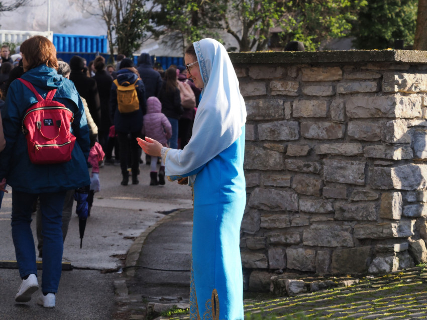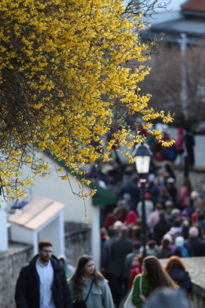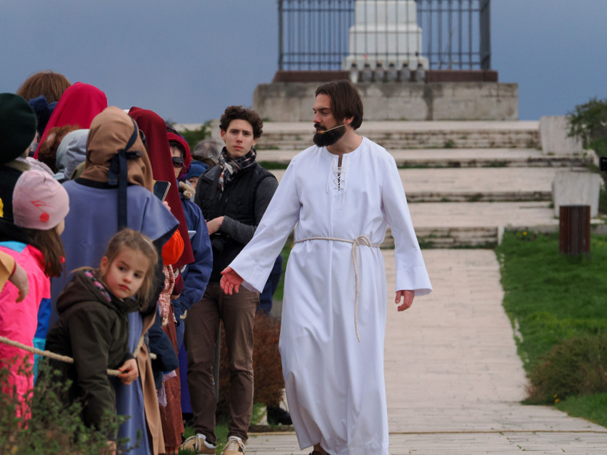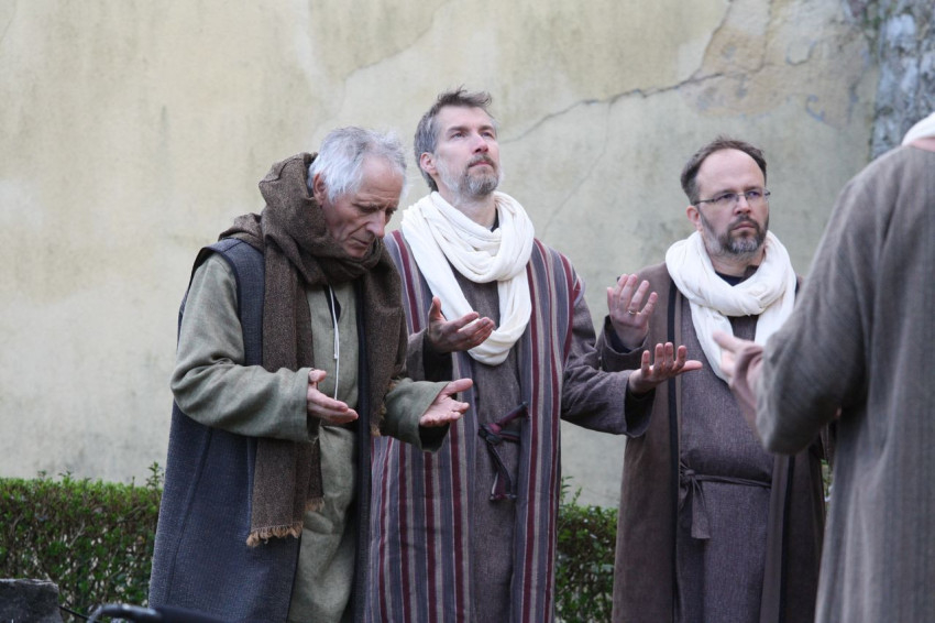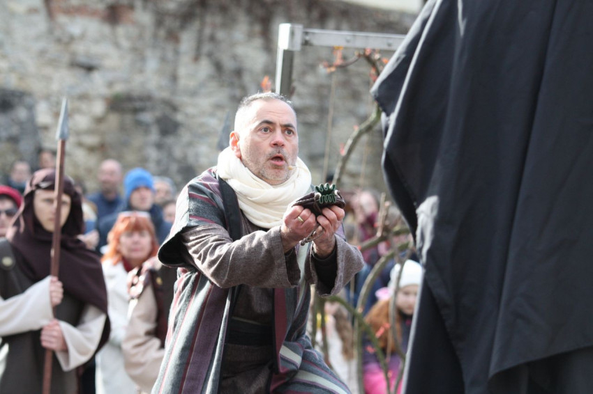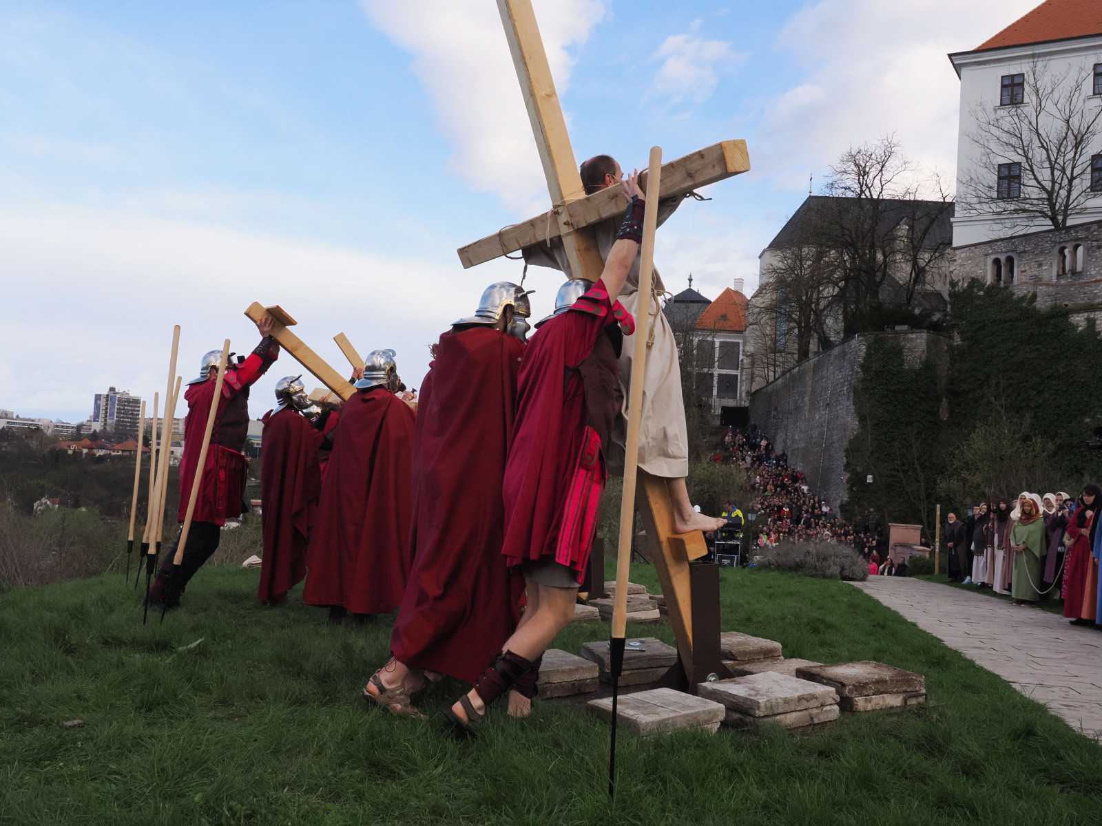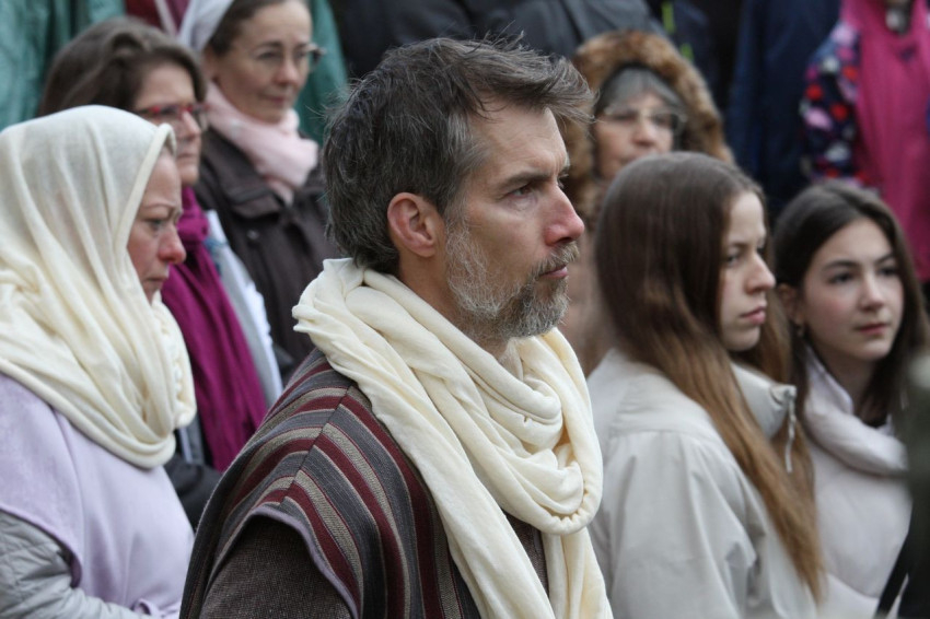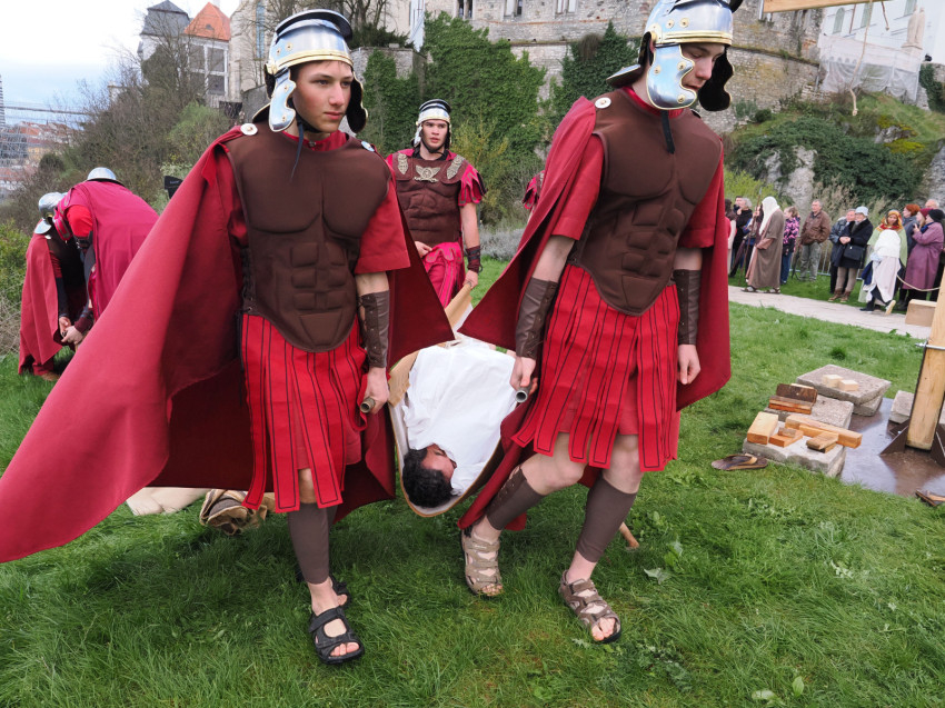 Jézus szenvedéstörténete Kiss György rendezésében elevenedett meg. A megrendítő misztériumjátékot több mint ezer néző követte a Margit-romoktól a rózsakerten és a Patak téren át a Benedek-hegyig, akiknek kedvét a hétvégi erőteljes lehűlés, a jégdara és a feltámadó szél sem vette el.
