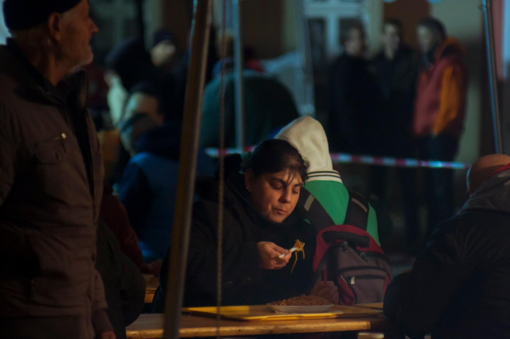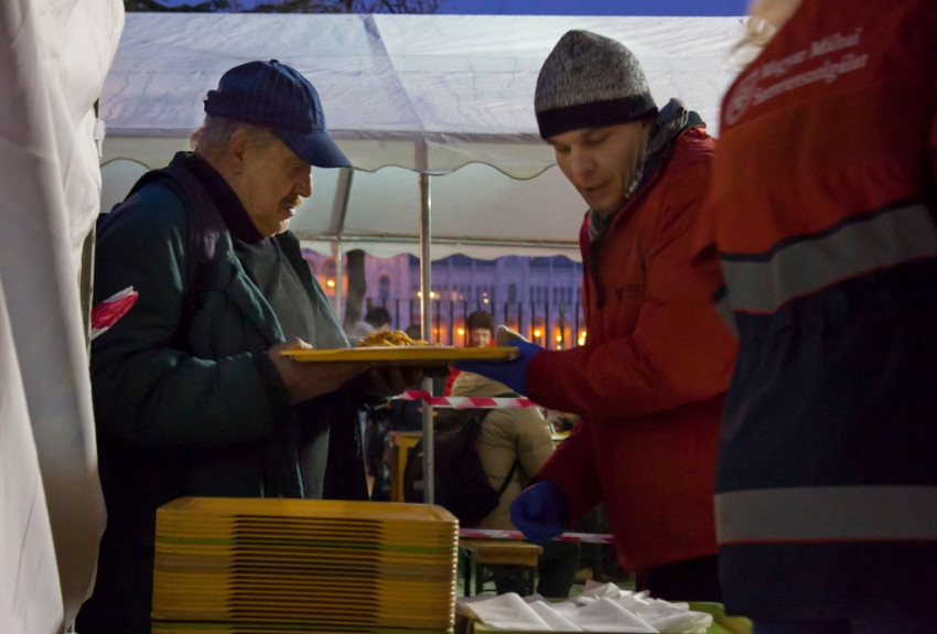 A Máltai Szeretetszolgálat Batthyány téri központjában várta meleg étel és forró tea a hajléktalanokat, akiknek gyakran csak az ilyen ételosztásokon van lehetőségük főtt ételhez jutni. Pénteken bolognai spagetti, szombaton pedig krumplifőzelék várta a betérőket.