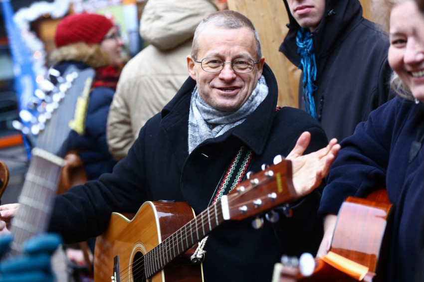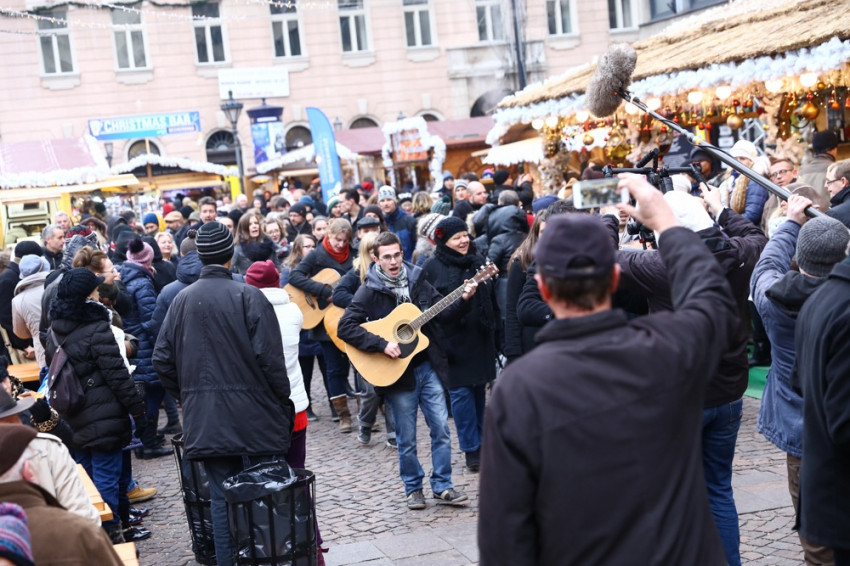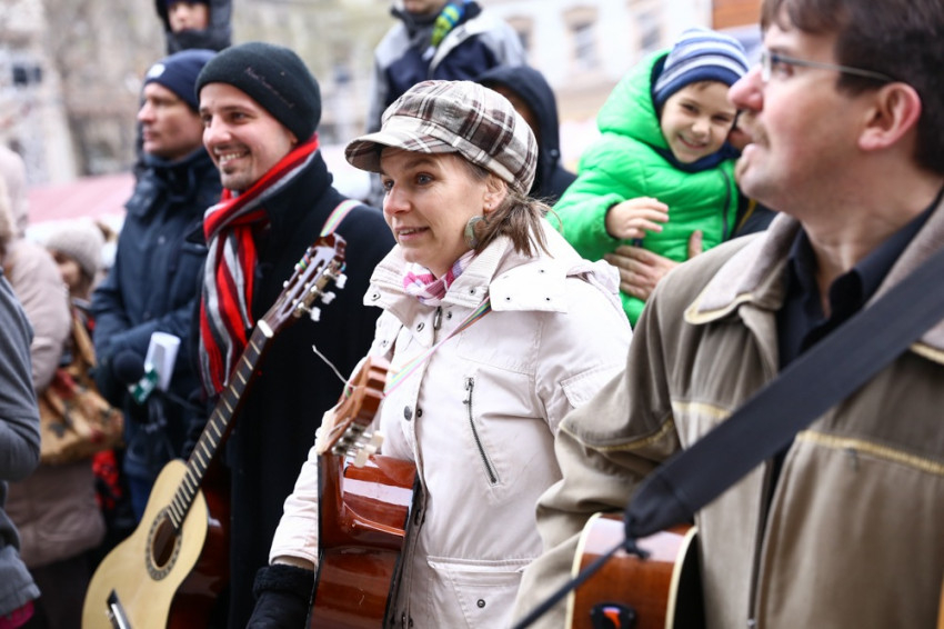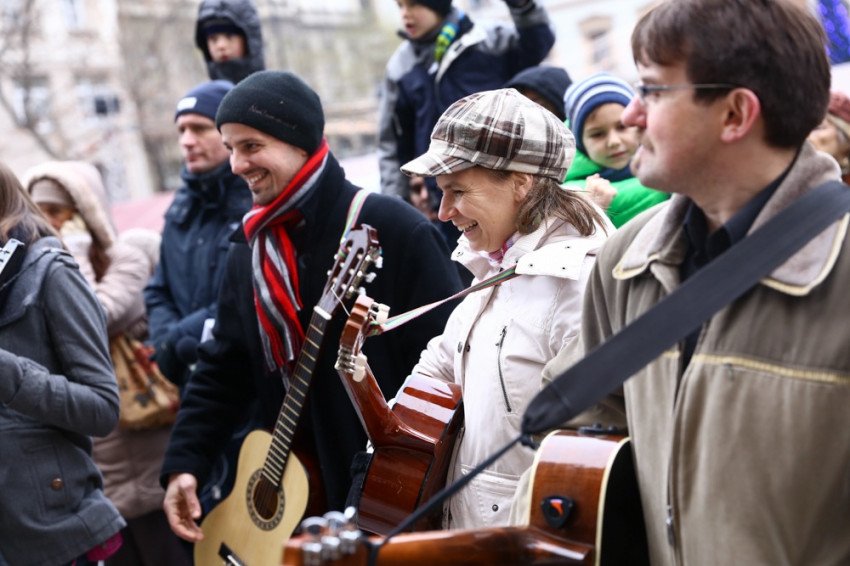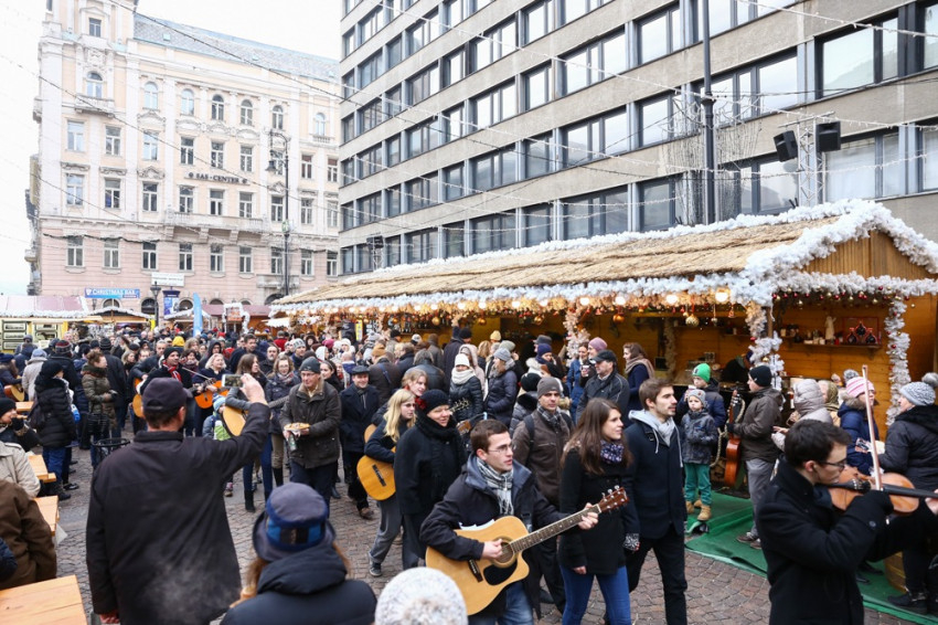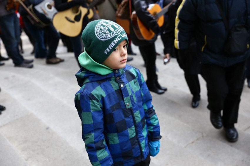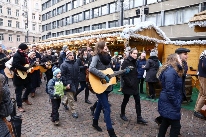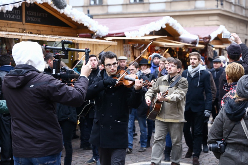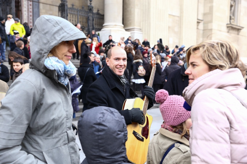A Csanády Lőrinc és a Boanergész zenekar vezetésével megvalósuló flashmobon az együttes alapítójának, Varga Attilának az Alleluja, Ébredj ember című szerzeményét énekelték a résztvevők, akik a bazilika előtti adventi vásár tömegéből csatlakoztak be a Sas utca felől induló gitáros csapatokba.
