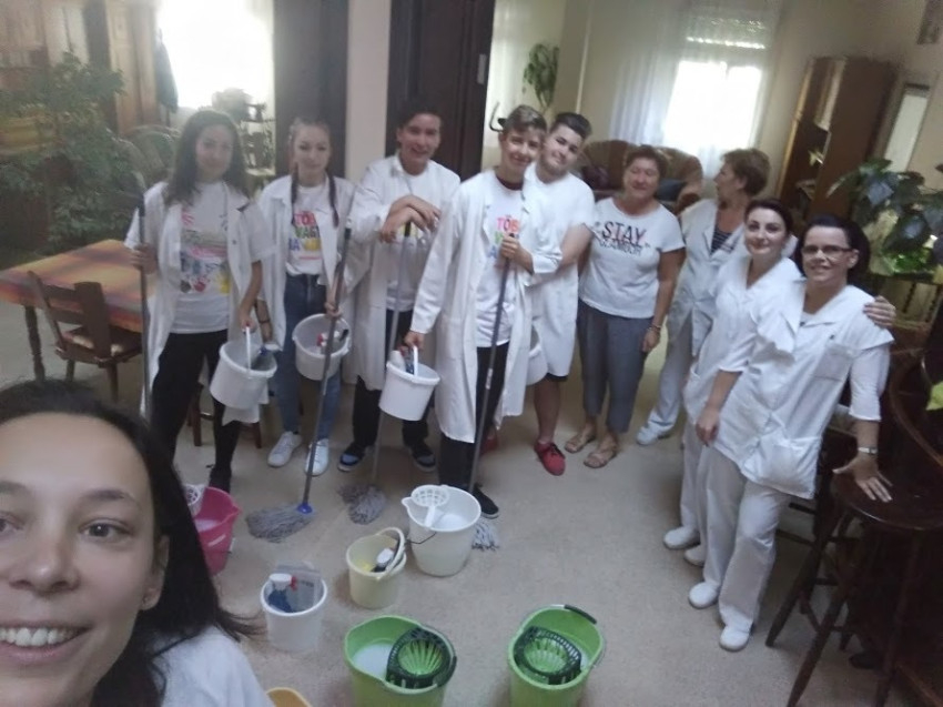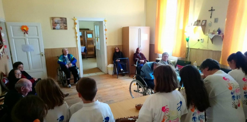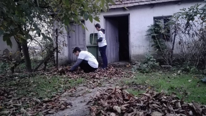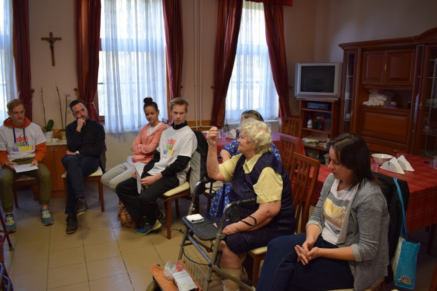 Az önkéntes fiatalok egy csoportja egy idős asszonynak segített a tűzifa aprításában és elpakolásában; mások egy szociális otthonba látogattak el, ahol minőségi időt tölthettek az idősekkel.