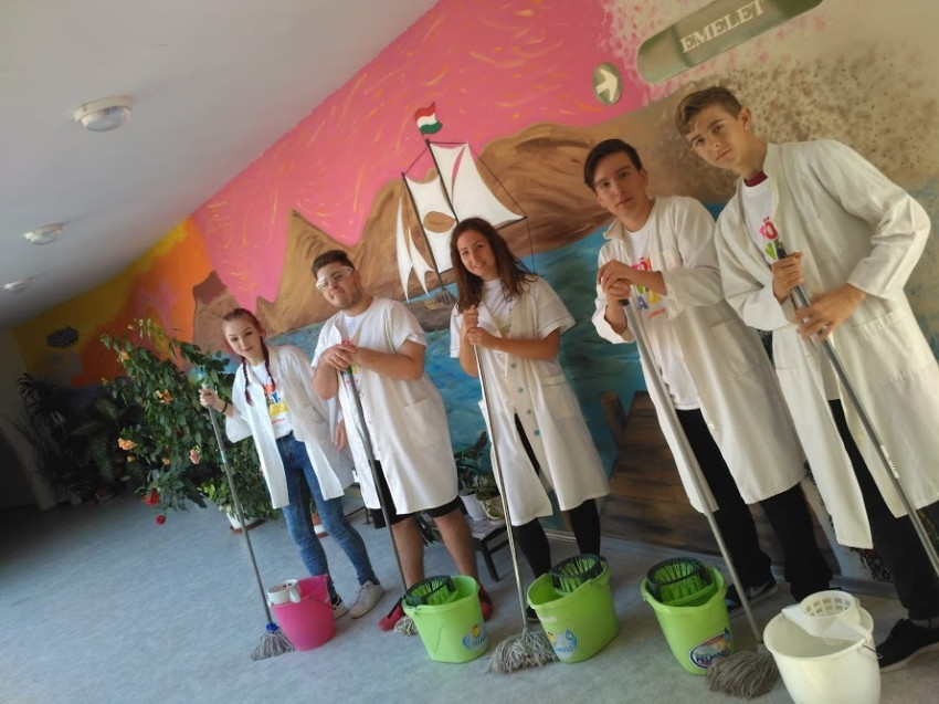 Másnap az általános iskola udvarát és a tantermeket takarították az önkéntesek; a végzős diákok az óvoda kertjét igyekeztek rendbe tenni, majd a nyíracsádi templom mellett épült új játszótér környékét gereblyézték fel a jelentkezők. A helyi ifjúsági hittancsoport a görögkatolikus közösségi ház ablakait tisztította meg.