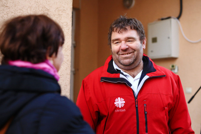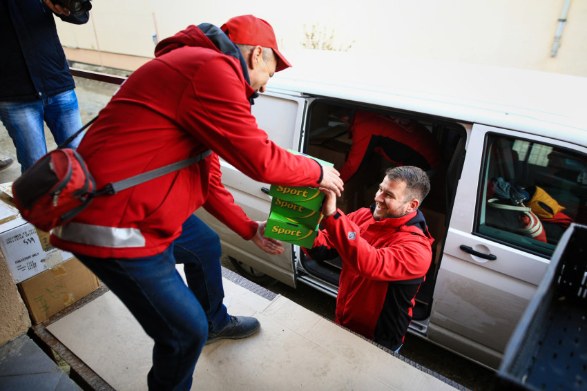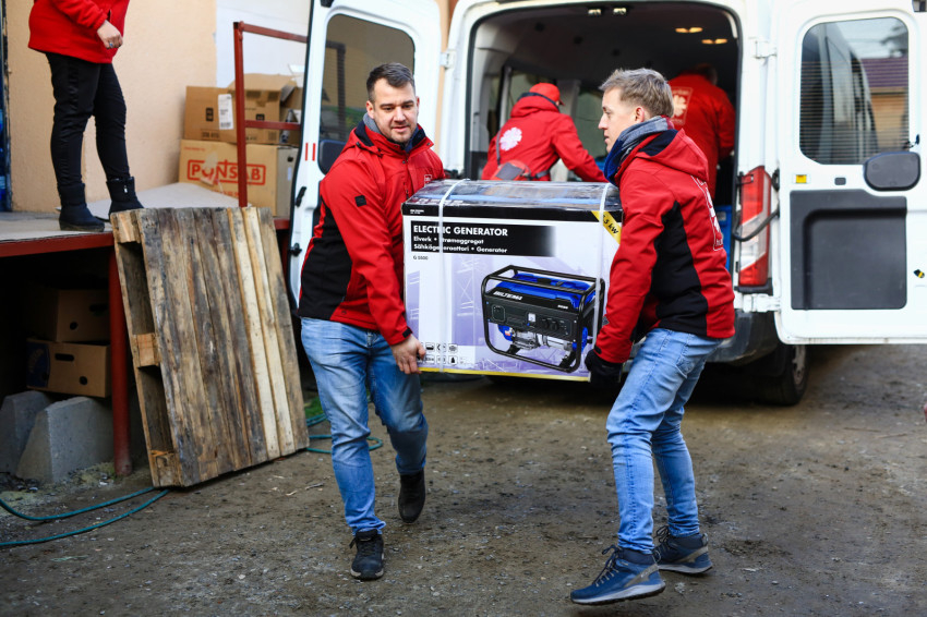 Az élelmiszerek és higiéniai termékek mellett ezúttal fatüzelésű kályha, fabrikett, lámpák és generátor volt a raktérben. A szállítmányt a munkácsi Szent Márton Karitász fogadja. Meglepetés, hogy Lucsok Miklós munkácsi püspök eljött az átadásra. Fehér Ferenc igazgató köszönti az érkezőket. Köztük van Écsy Gábor, a Katolikus Karitász országos igazgatója, Miroslav Dzurech, a Caritas Slovakia (SKCH) főtitkára és Pavol Vilček, a Szepesi Egyházmegyei Karitász igazgatója.