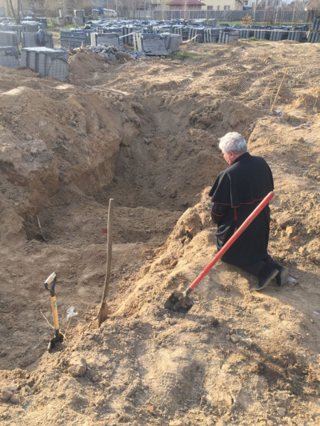 „A nunciussal éppen tartunk visszafele Kijevbe, ezekről a világ minden embere számára nehéz helyekről, ahol még mindig sok temetetlen halottat találtunk, és egy sírt, amelyben legalább nyolcvan ember nyugszik, kereszt- és vezetéknév nélkül eltemetve. És hiányoznak a könnyek, hiányoznak a szavak. Hál’Istennek van azonban a hit: a nagyhéten vagyunk, nagypénteken, amikor egyesülni tudunk Jézus személyével, és vele együtt fel tudunk szállni a keresztre, mert nagypéntek után – tudom, tudom – a feltámadás vasárnapja lesz. És talán Ő mindent el fog nekünk magyarázni az Ő szeretetével és mindent meg fog változtatni bennünk is, ezt a keserűséget és ezt a szenvedést, amelyet néhány napja hordozunk, de különösen is ettől a mai naptól fogva.”