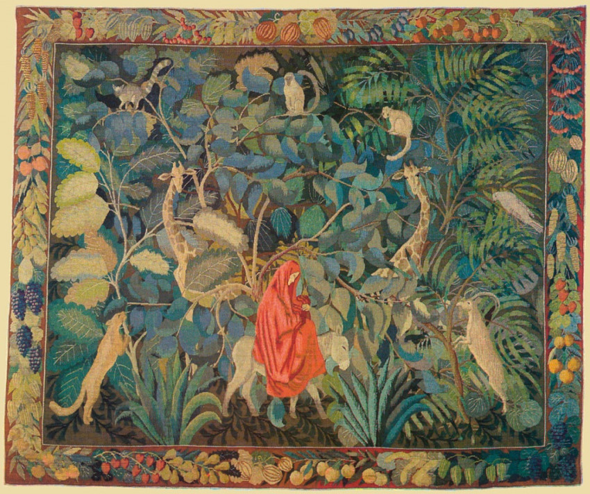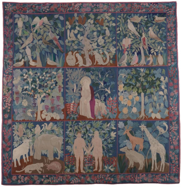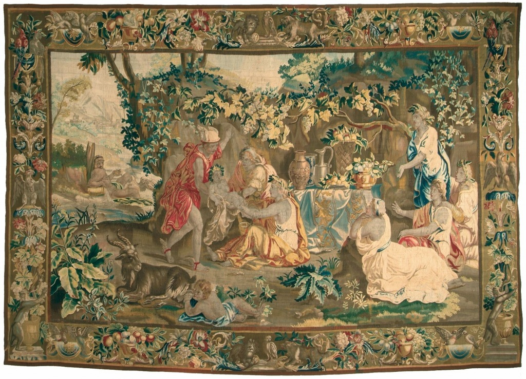 A kiállítás első, Bibliai és mitológiai témájú németalföldi kárpitok a Keresztény Múzeum és az Iparművészeti Múzeum gyűjteményében című szekciójában a műfaj egyik legjelentősebb – németalföldi – tradícióját a Keresztény Múzeum brüsszeli, oudenaarde-i és tournai-i kárpitjai, valamint az Iparművészeti Múzeumnak a nemzetközi Kárpit2 kiállításáról is ismert Mercurius átadja a gyermek Bacchust a nimfáknak című 18. századi brüsszeli kárpitja reprezentálja. Ez utóbbihoz kapcsolódik a 2011-ben, a magyar EU elnökség évében a brüsszeli Királyi Történeti Múzeumban, majd a budapesti Iparművészeti Múzeumban bemutatott Európa szövete című nemzetközi kortárs műegyüttes, amely a műfajnak a tervező, a kartonrajzoló és a szövő együttműködésére támaszkodó kollektív hagyományával szemben a kárpitművészet újabb, az angol William Morris (1834-1896) művészet és kézművesség egységére épülő esztétikáján alapuló individuális, autonóm válfaját képviseli.