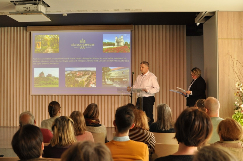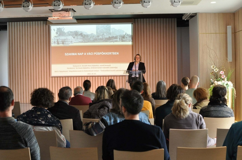 A püspökkert kerttörténeti tudományos kutatásainak eredményeiről Gecséné Tar Imola tájépítész számolt be. Előadásában a váci püspökkert különböző korszakait mutatta be – püspökkoronként a kert fennmaradt történeti elemeit, emlékeit, gazdagságát a forráskutatások eredményeinek fényében.