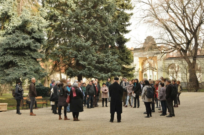 A résztvevők – közel hatvanan – a nap kezdetén vezetett séta keretében megtekintették a püspöki palotát és a püspökkertet.
