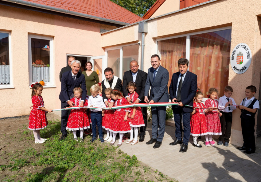 „Örömmel és hálával jöttünk ma össze, mert Isten kegyelméből megújult és bővült Hédervár község óvodája, mely reménységünk szerint sok nemzedéken át áll majd a keresztény nevelés szolgálatában. Mielőtt átadnánk első növendékeinek és az óvónőknek, kérjük rá Isten áldását” – mondta imádságában Szakál Ádám tartományfőnök.