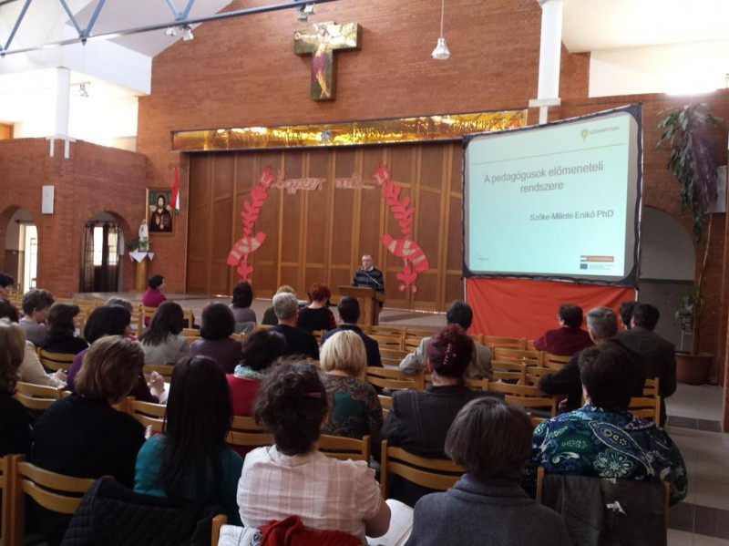 Az iskolában tartott továbbképzésen az egyházmegye iskoláiból érkező pedagógusok szép számban, 160 fővel vettek részt. A személyes konzultáció lehetősége jó lehetőséget biztosított a különböző, a portfólió készítésével kapcsolatos kérdések tisztázására.