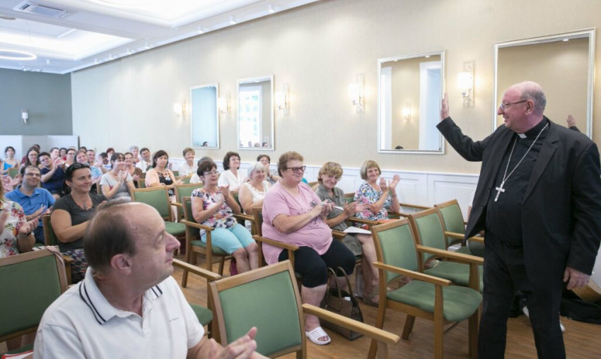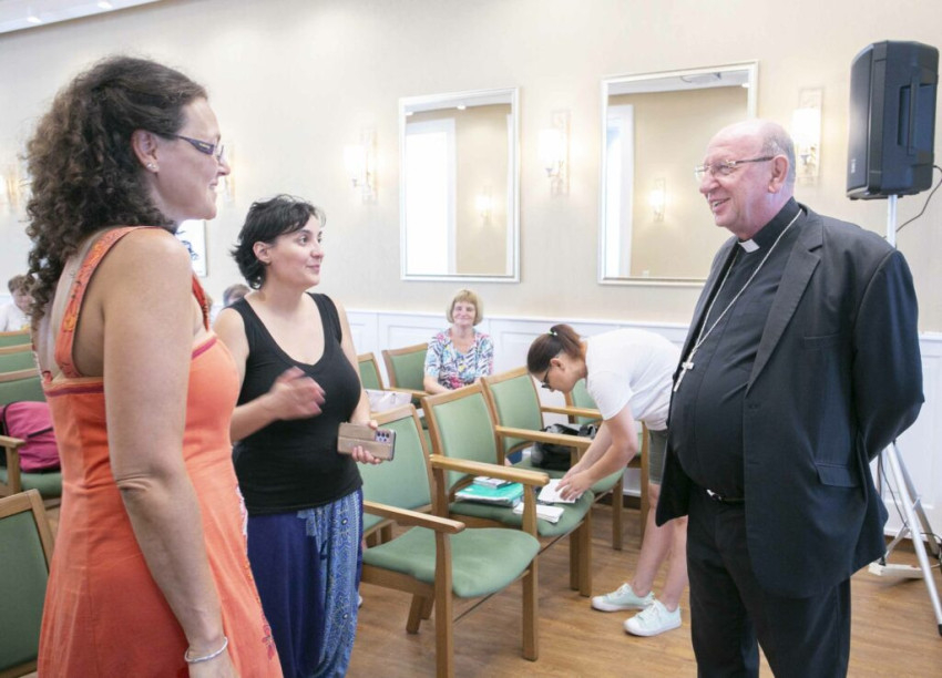 A továbbképzés második napján Palánki Ferenc debrecen-nyíregyházi megyéspüspök is találkozott a hitoktatókkal, és a reggeli zenés, imádságos áhítatot követően rövid elmélkedést tartott a napi evangélium alapján.