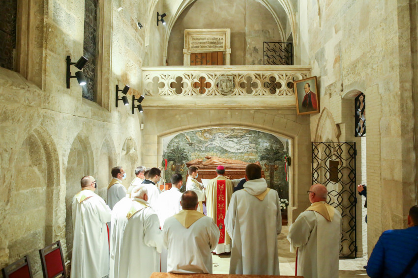 A szentmise után a Héderváry-kápolna gótikus terében, ahol Szent László király hermájával szemben nyugszik Apor Vilmos, elhelyezték az emlékezés virágait, és imádkoztak a vértanú püspök szentté avatásáért.