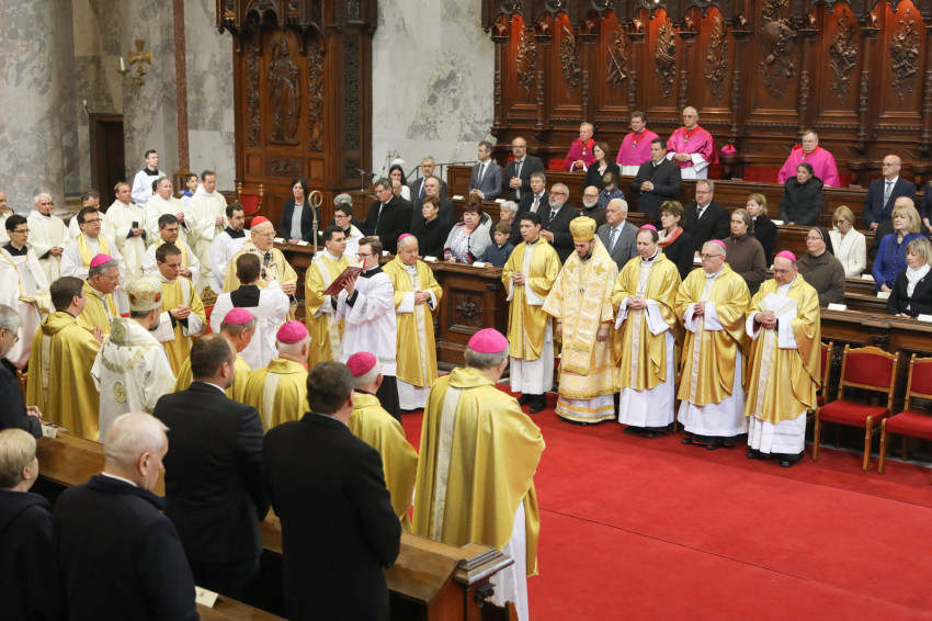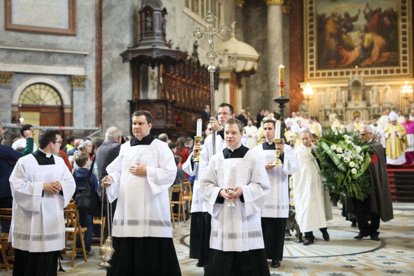 A szentmisén koncelebráltak a Magyar Katolikus Püspöki Konferencia jelen lévő tagjai – Bábel Balázs kalocsai érsek, Kocsis Fülöp görögkatolikus metropolita, Marton Zsolt váci püspök, Berta Tibor tábori püspök, Szocska Ábel görögkatolikus püspök, Beer Miklós nyugalmazott váci püspök, Cserháti Ferenc és Mohos Gábor esztergom-budapesti segédpüspökök –, Orosch János nagyszombati érsek, valamint José Salas Castañeda atya, az Apostoli Nunciatúra ideiglenes ügyvivője.