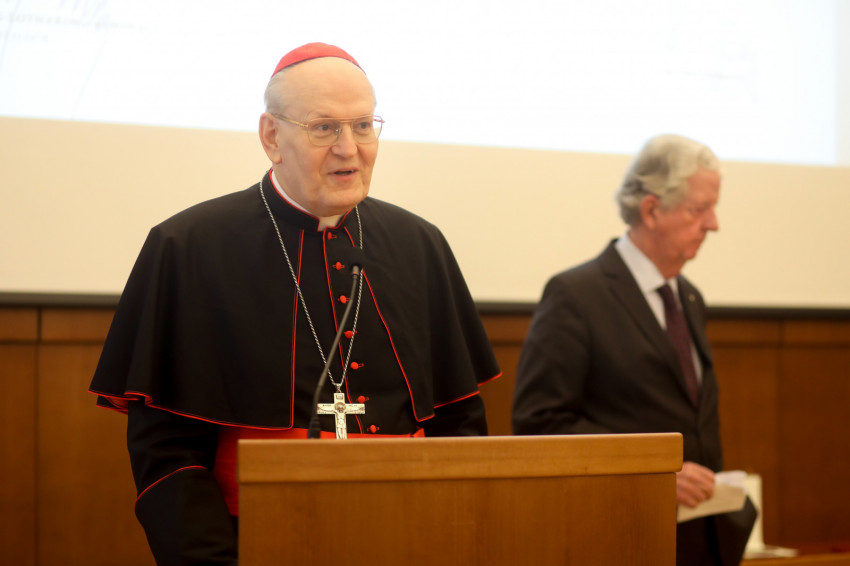 Erdő Péter bíboros köszöntőjében örömét fejezte ki, hogy az idén a járványos időszak visszavonulása után ismét együtt ünnepelhetünk és „fölszabadult lélekkel kérhetjük a gondviselő Istent, hogy Egyházunk és hazánk nagy tanúságtevőjét”, Mindszenty József bíborost mielőbb a boldogok és szentek sorában tisztelhessük.
