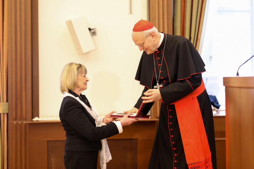 A szentmisét követően Erdő Péter bíboros, prímás a Szent Adalbert Központban ünnepélyes keretek között Mindszenty-életműdíjat adott át Vertse Mártának, a Vatikáni Rádió magyar adása Rómában élő nyugalmazott főszerkesztőjének, valamint Vincenzo Criscuolo kapucinus szerzetesnek, a Szentek Ügyeinek Kongregációja posztulátorának, aki 2007 és 2019 között a Mindszenty-ügy relátora volt.