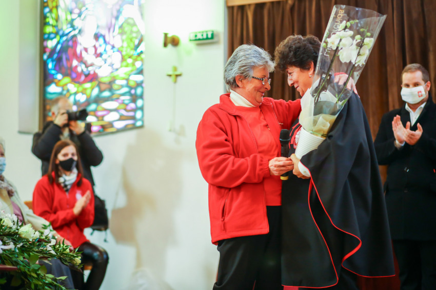 Hosszú volt a köszönetmondások sora. Mindez megmutatta, mennyi ember elkötelezett munkája révén valósul meg az a gazdagság, ami a Szombathelyi Egyházmegyei Karitász életét jelenti. Tuczainé Régvári Marietta könnyeivel küzdve mindenkinek tudott mondani valami igazán személyeset. Méltató szavak hanzottak el, együtt megélt történeteket idéztek föl, ahogy mindez csak egy egymást szerető, egymást jól ismerő, egymást nagyon értékelő családban lehetséges.