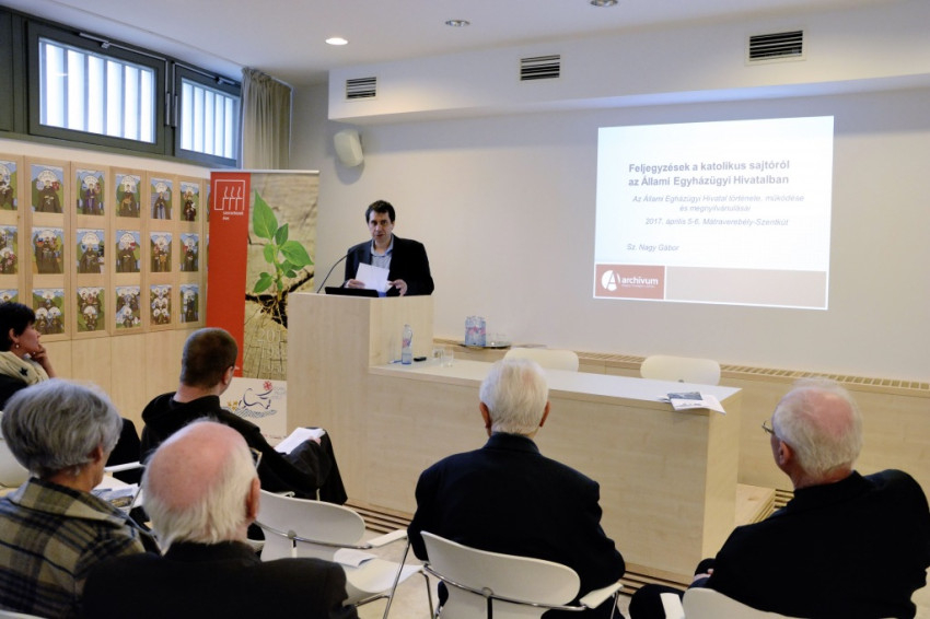 Sz. Nagy Gábor történész, levéltáros, a Magyar Nemzeti Levéltár Országos Levéltára 1945 utáni Politikai Kormányszervek és Pártiratok Főosztályának főosztályvezető-helyettese Feljegyzések a katolikus sajtóról az ÁEH-ban címmel a magyarországi katolikus sajtóról írt 1967–68-as jelentéseket mutatta be. A vizsgált sajtóorgánumok: a Magyar Kurír, mely 1911 óta működött mint tudósító sajtószolgálat, hírügynökség; a Vigilia, mely 1935-től tudományos és kulturális folyóiratként jelent meg; az 1945-től jelentkező Új Ember politikai és hitbuzgalmi hetilap; az 1956-tól megjelenő Katolikus Szó, a papi békemozgalom lapja, valamint az 1967-től kiadott Teológia hittudományi folyóirat. A történész hangsúlyozta, ezek a jelentések azért is fontosak, mert az elemzésen kívül ajánlásokat is tesznek, hogy miként kellene működnie a katolikus sajtónak az ÁEH szerint. A bemutatott időszakot követően leginkább az Új Emberről maradtak fenn jelentések, amelyekben az is szerepel, hogy mennyi vallási, mennyi a békemozgalmat támogató és mennyi politikai írás született a lapban. Az 1968-as jelentés szerint a katolikus hetilap passzív a társadalmi és politikai kérdésekben, emiatt – szemben a Katolikus Szóval – „papírpocsékolás” a megjelentetése, egyetlen értelme talán az, hogy dokumentálja a vallásszabadságot. A Vigiliáról sem volt a hatalomnak túl jó véleménye. A jelentések szerint nyoma sincs a folyóiratban a haladó, katolikus világirodalomnak, a szocialista országok katolikus vagy keresztény hangvételű, humanista irodalmi alkotásainak. Helyet kapnak viszont érthetetetlen, modoros, szürrealista, nihilista versek, amelyekről talán még a szerzőjük sem tudja megmondani, mit is akar velük kifejezni. A feladatok közöt szerepel továbbá: a Magyar Kurír legyen a szocialista Magyarország katolikus tudósítója, nem pedig a múltból itt maradt tessék-lássék módra korszerűsített félhivatalos hírügynökség. Javasolják azt is, hogy szűnjön meg az egyszemélyi vezetés.