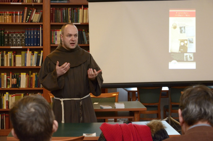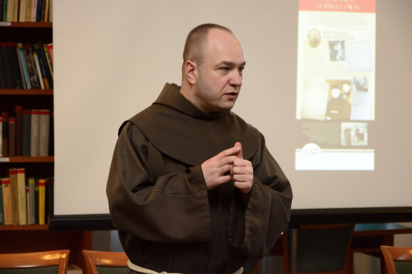 Kálmán Peregrin OFM, aki a hét magyar ferences vértanú peranyagát viceposztulátorként már átadta a Szentek Ügyeinek Kongregációja illetékeseinek, a boldoggáavatási folyamat néhány különlegességéről szólt. Bemutatta azz az egyházi, rendi környezetet, amelyben a vértanúságot elszenvedők éltek, működtek, szolgáltak, illetve arról szólt, kit tekint teológiai értelemben vértanúnak az Egyház.