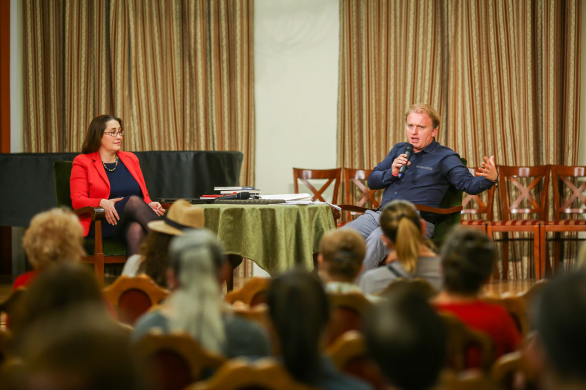 A már-már standuposként is szereplő Lackfi eddig még ki nem adott zsoltárverseiből hozott válogatást, Szabó T. Anna pedig egy-egy ehhez kapcsolódó lírai művét vagy epikai alkotásának részletét osztotta meg a résztvevőkkel.