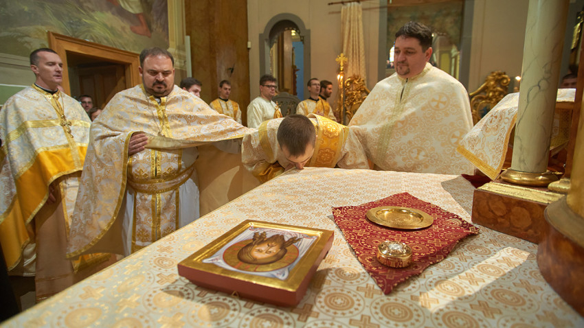 A szertartáson az oltárra helyezett adományok, a kenyér és a bor a püspök szavaira – eredeti természetüket el nem veszítve – többé válnak, mint egyszerű kenyér és bor: Krisztus titokzatos testévé és vérévé; ugyanígy az oltárra boruló diakónus Isten megszentelő kegyelme által – megmaradva emberi természetében – sokkal többé válik, mint annak előtte volt: Jézus Krisztus munkatársává, képmásává. „Hiszen ezt jelenti a papi hivatás: Krisztus képmásának lenni az emberek közt” – mondta a hierarcha, és megajándékozta Ferenc atyát egy ikonnal, melyen Krisztus arca látható, s amely emlékeztetheti egész életében feladatára.