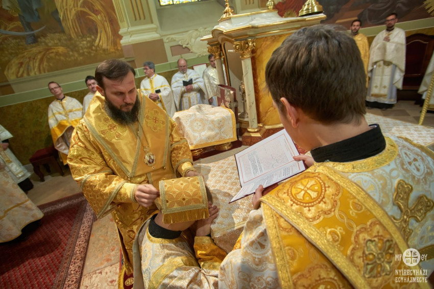 Axios! – azaz „méltó” felkiáltások kíséretében megkapta a papi jelvényeket, az oltárnál pedig tenyerében tartotta a szent adományt a püspök szavai után: „vedd e zálogot, és őrizd azt a mi Urunk, Jézus Krisztus eljöveteléig, mert számon kéri majd tőled”.