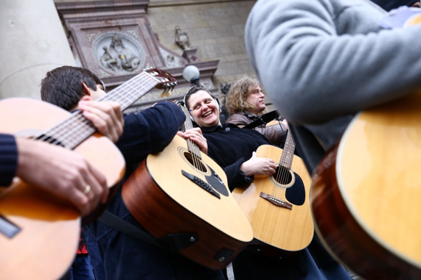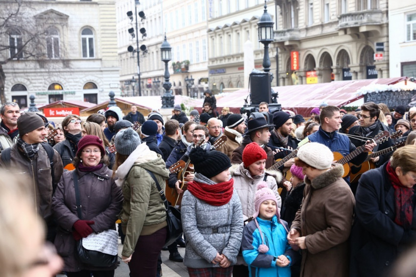 A Csanády Lőrinc és a Boanergész zenekar vezetésével megvalósuló flashmobon az együttes alapítójának, Varga Attilának az Alleluja, Ébredj ember című szerzeményét énekelték a résztvevők, akik a bazilika előtti adventi vásár tömegéből csatlakoztak be a Sas utca felől induló gitáros csapatokba, és akik a zord időjárás ellenére nagy derűvel ismételték el többször is a koreográfiát, és énekelték el sokadik alkalommal is ugyanolyan ujjongással a dalt.