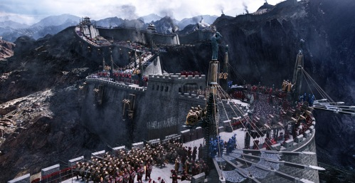Csang Ji-mou „személyi garanciájával” tehát minden együtt volt ahhoz, hogy egy nagyszabású történelmi filmet várjunk és lássunk a nagy fal több mint kétezer-kétszáz éves jegyzett históriájának valamely drámai fejezetéből. De nem ez történt. A csalódáson azonban könnyen túlteheti magát a néző, ha elfogadja, hogy realista múltidézés helyett itt egy frissen kreált, legendák homályába vesző fantasyt kap. Tanmesét, amelyben az ősi, gazdag és büszke Kína védi meg a világot a ráözönlő vésztől. A megrontott, kapzsivá és gátlástalanná vált emberiségre ugyanis rendre rárontanak a meteorbecsapódás következtében egykor a hegyek gyomrából kiszabadult tao-tiék. (A kínai művészetben szertartási bronztárgyak díszítőelemeként, szörnymaszk-motívum formájában jelenik meg ez az emberevő mitikus lény.) Ki tudja, miért éppen hatvanévenként, támadást indítanak, s ilyenkor hangrezgésekkel kommunikáló, hatalmas „rémkirálynőjük” vezetésével feltartóztathatatlan fenevadak árja lepi el a sziklákkal szegélyezett tájat. Semmi sem állhatja útjukat – csak a különféle hadigépezettel felszerelt nagy fal. De az is csak addig, amíg a leleményes kínai „harcművészek” tartani tudják a frontot.